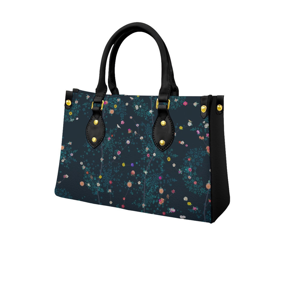 Women's Tote Bag With Black Handle Bird Floral Midnight Teal