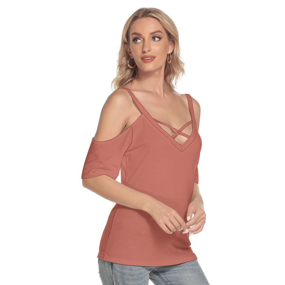 Open Shoulder Cross Low V-Neckline T-shirt Neutral Rose