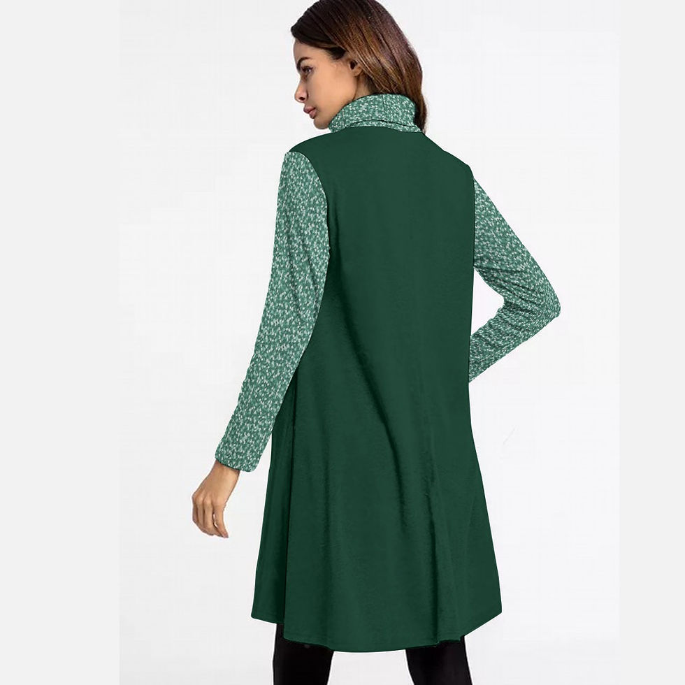 High Neck Long Sleeve Dress Forest Floral Green