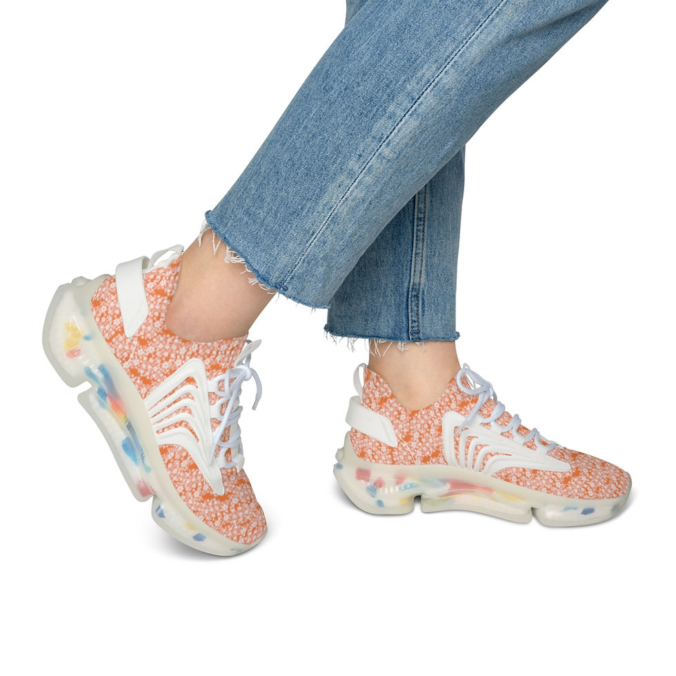 Women's Mesh Sneakers White Floral Print Orange