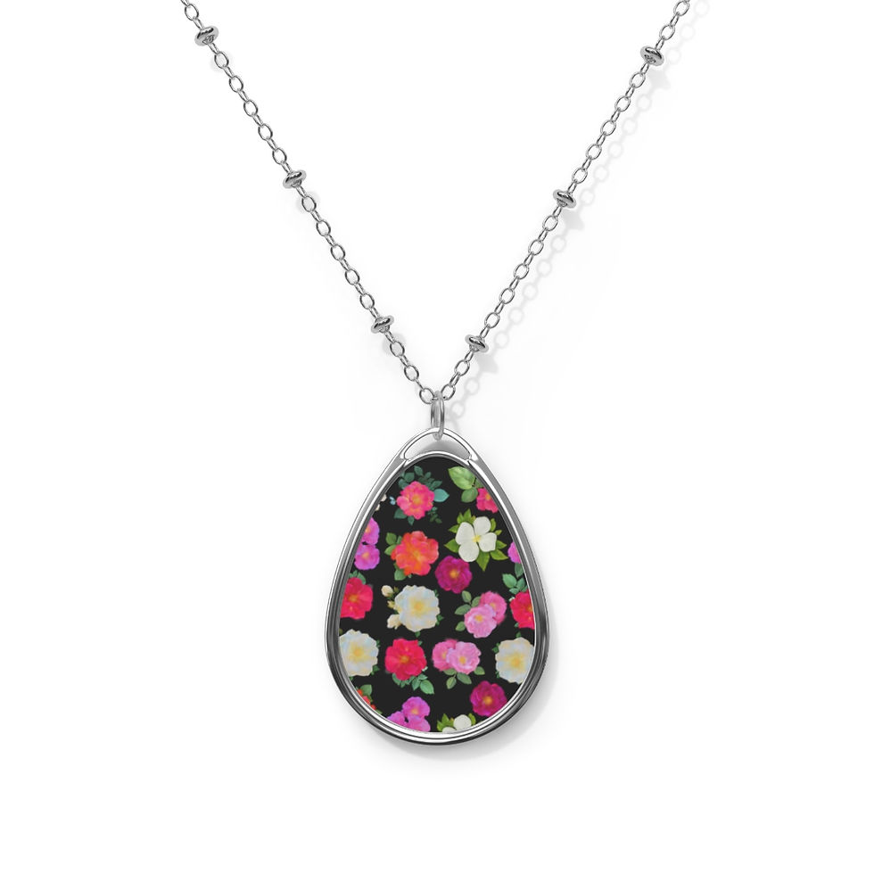 Oval Necklace Multi Floral Black