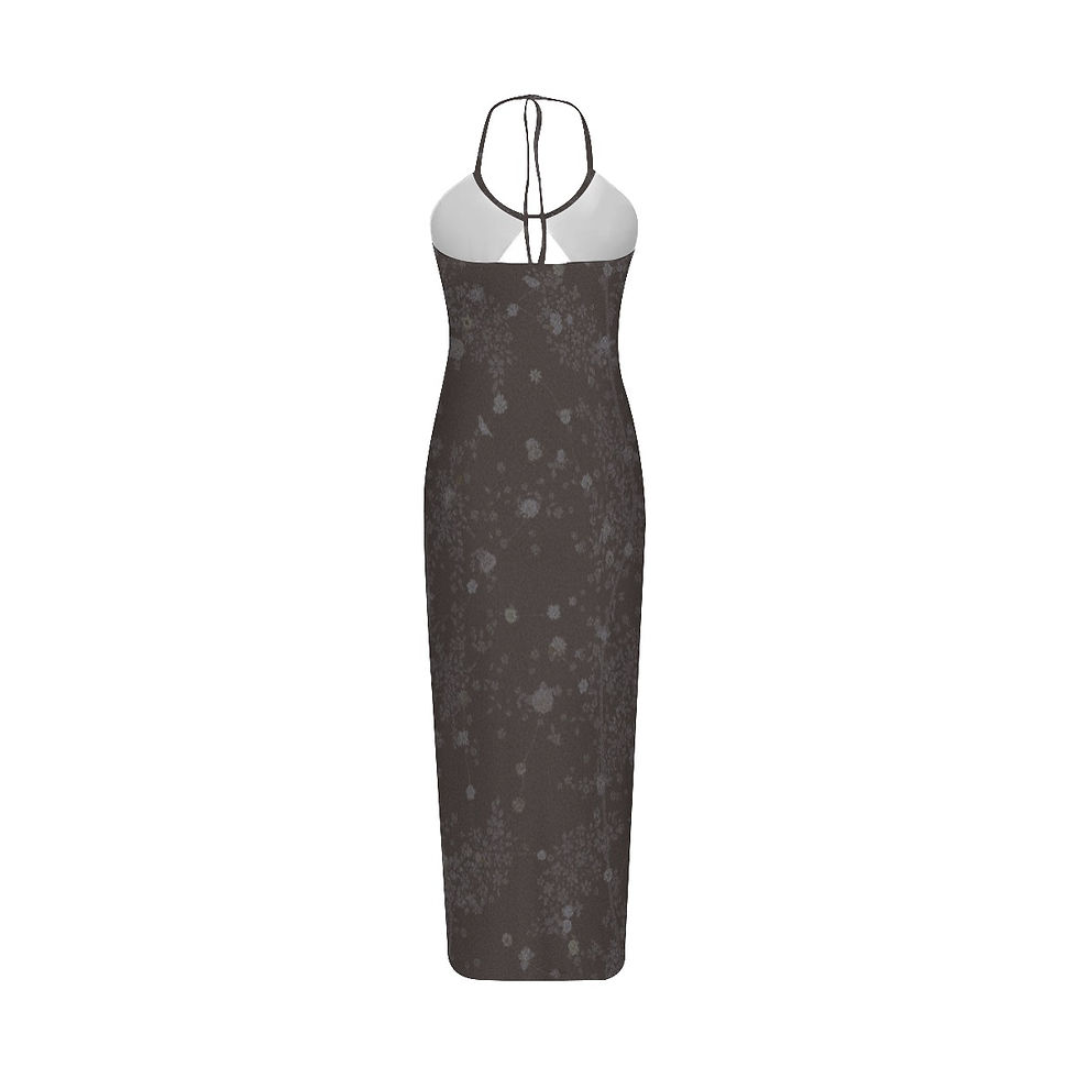 Wrap Halter Dress with Belt Mauve Taupe Bold Roses