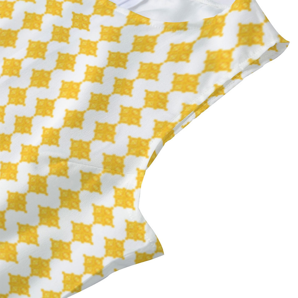 Chiffon Sleeveless Dress Gold White é Diamond Print