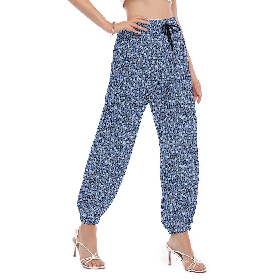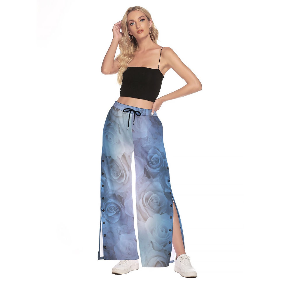 High Waist Wide Leg Trousers Turquoise White Rose Floral